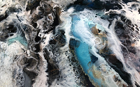 Acrylic, hand-sculpted, heavily textured mixed-media with clear flood coat, on gallery-wrapped canvas